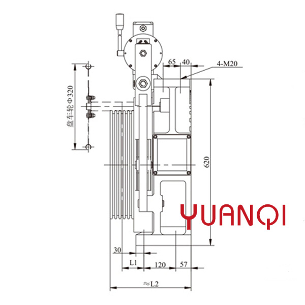 Remark:Ang makina mahimong ma-configure gamit ang handwheel ug ang remote manual brake release nga 4m.