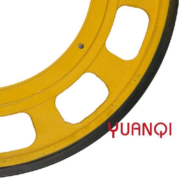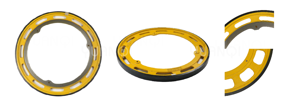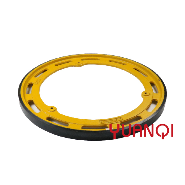 Třecí kola eskalátorů jsou obvykle vyrobena z materiálů odolných proti opotřebení, jako je pryž nebo polyuretan. Mají vysoký koeficient tření, aby byla zajištěna dostatečná kontaktní plocha mezi řetězem a třecím kolem pro efektivní přenos výkonu.