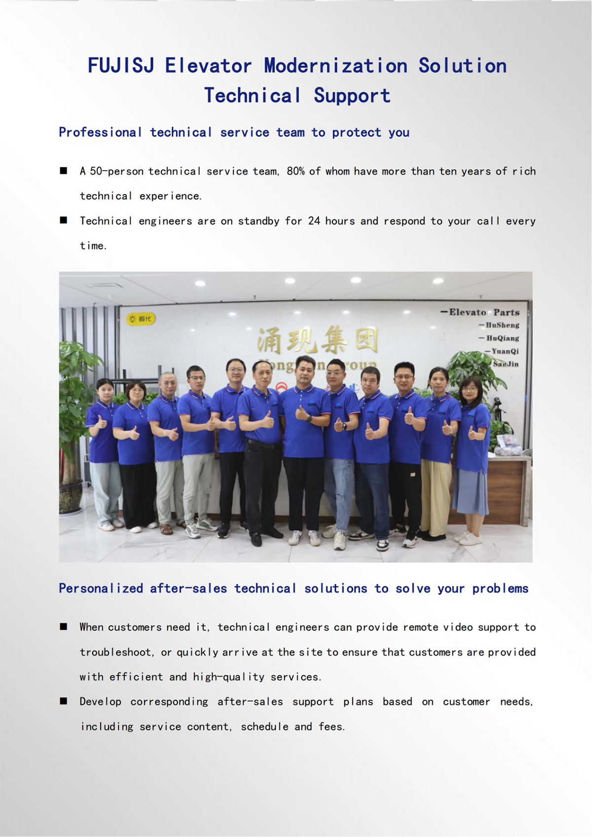 ਕਿਰਪਾ ਕਰਕੇ ਸਾਡੇ ਨਾਲ ਸੰਪਰਕ ਕਰੋ! ਇੱਕ 50-ਵਿਅਕਤੀਆਂ ਦੀ ਤਕਨੀਕੀ ਸੇਵਾ ਟੀਮ, ਜਿਨ੍ਹਾਂ ਵਿੱਚੋਂ 80% ਕੋਲ ਦਸ ਸਾਲਾਂ ਤੋਂ ਵੱਧ ਦਾ ਅਮੀਰ ਤਕਨੀਕੀ ਤਜਰਬਾ ਹੈ। ਤਕਨੀਕੀ ਇੰਜੀਨੀਅਰ 24 ਘੰਟੇ ਸਟੈਂਡਬਾਏ 'ਤੇ ਰਹਿੰਦੇ ਹਨ ਅਤੇ ਹਰ ਵਾਰ ਤੁਹਾਡੀ ਕਾਲ ਦਾ ਜਵਾਬ ਦਿੰਦੇ ਹਨ।