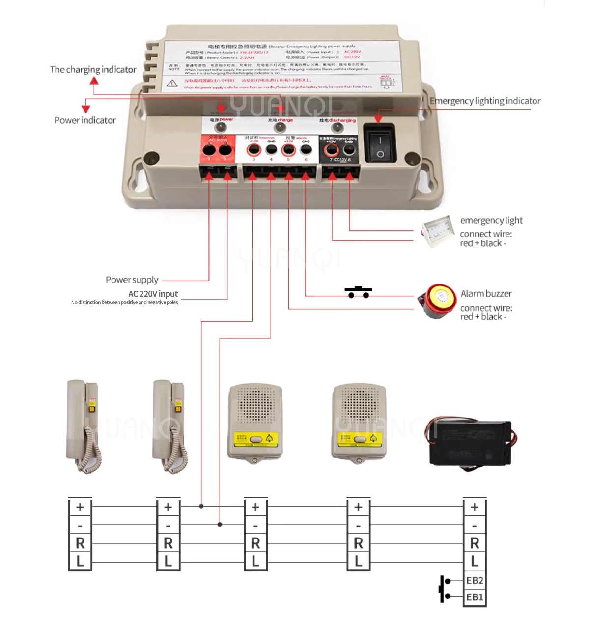 ۱ د خطر زنګ، ۱ بیړنی څراغ، ۱ بیړنی بریښنا رسونه